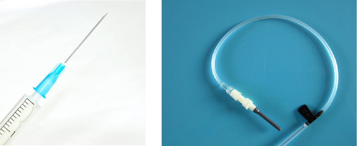 采血針(抑或注射針、留置針等)都由針頭和針桿組成,針頭設(shè)在針桿的頭部,在針桿上連接有護(hù)套,在護(hù)套和針桿之間設(shè)有復(fù)位彈簧且護(hù)套的初始位置位于針頭和針桿的頭部。為了保證針管和針座良好的粘合,必須要采取一些點(diǎn)膠工藝。
