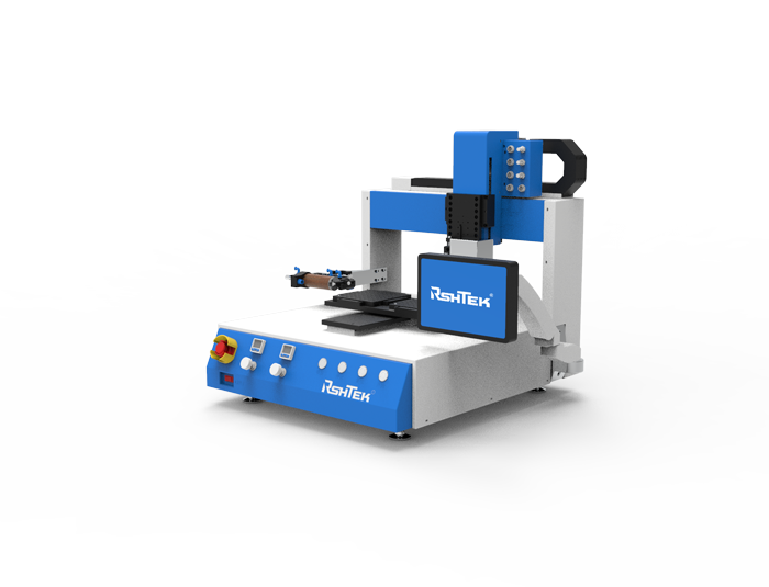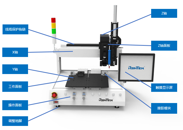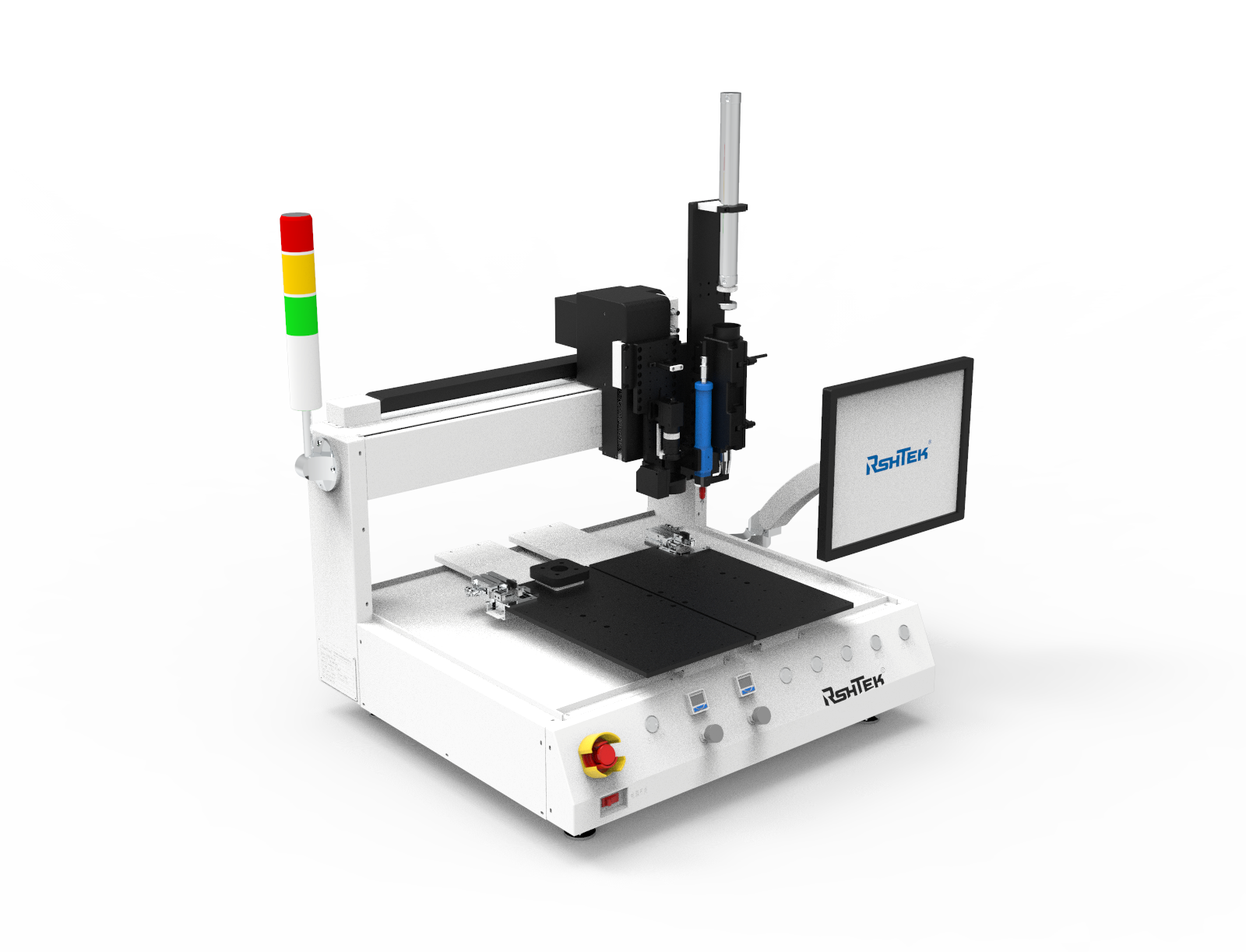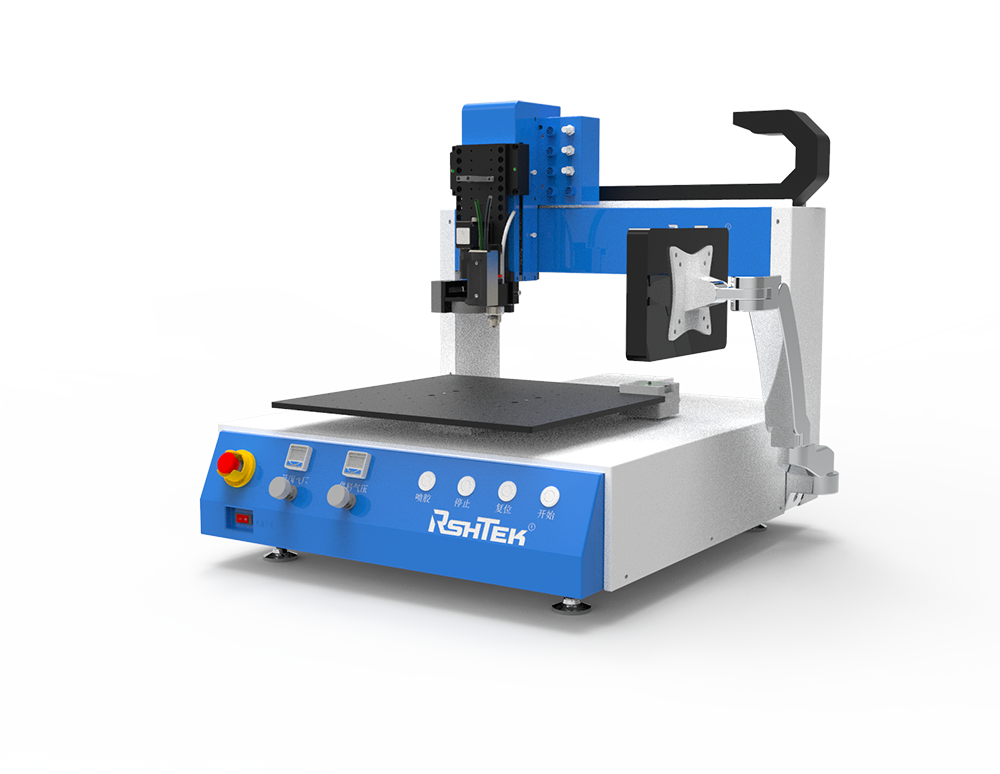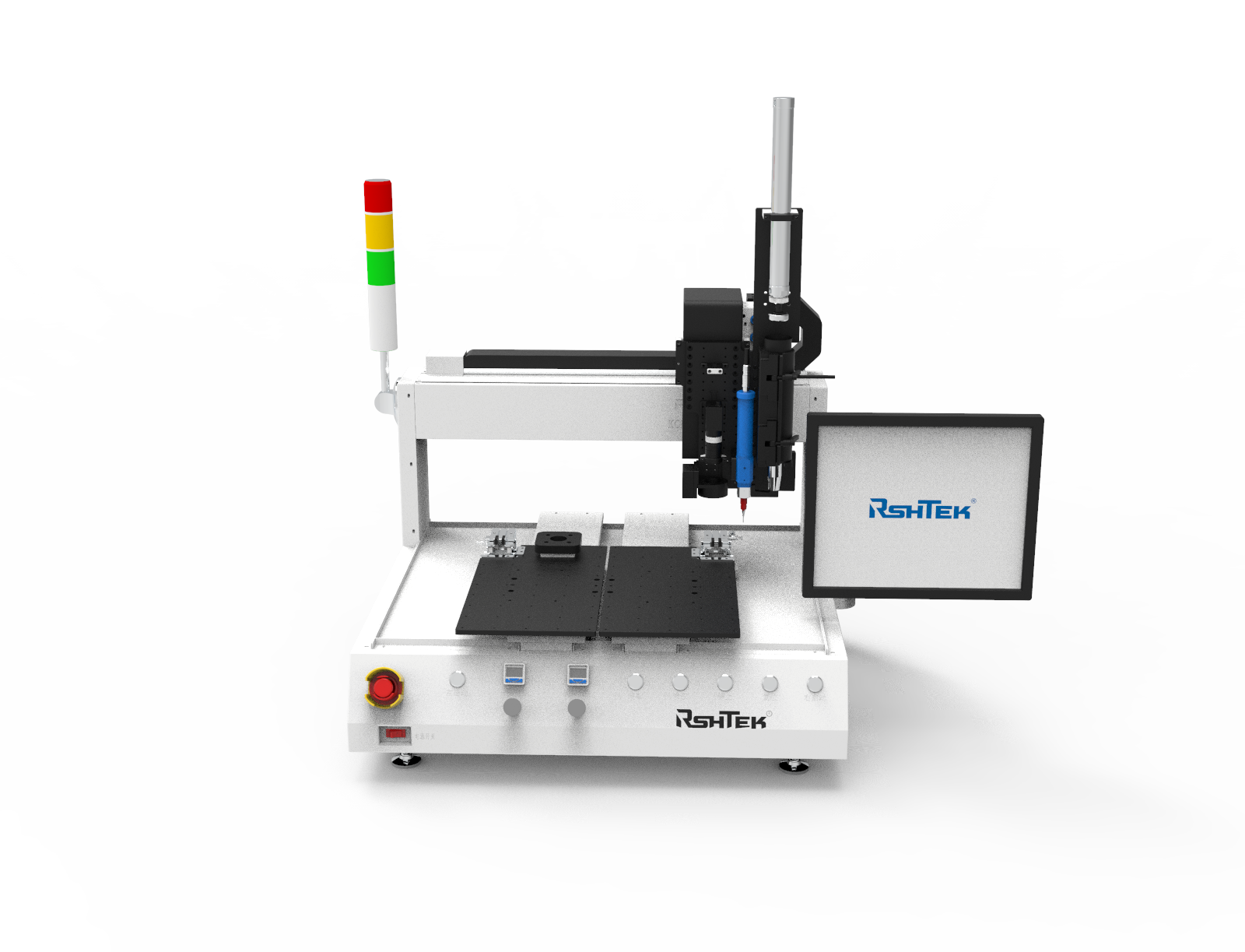 睿斯合三軸桌面點膠機(jī)DR系列雙工位桌面點膠機(jī),提高生產(chǎn)效率,雙Y軸同時工作,嚴(yán)選伺服電機(jī)、絲桿品質(zhì),保證了產(chǎn)品的精度和耐用性??刂葡到y(tǒng)全內(nèi)置設(shè)計+懸臂式顯示器,使得整機(jī)緊湊,更方便收納??纱钆涠嗫铧c膠閥,滿足不同工藝生產(chǎn)的需求。適用于熱熔膠粘接、底部填充膠、表面貼裝等。