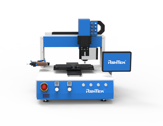 DR-400X桌面機,可以實現(xiàn)產(chǎn)品吸附及放置,并實現(xiàn)旋轉(zhuǎn)側(cè)邊點膠。精巧的桌面機點膠設(shè)備,睿斯合三軸桌面點膠機DR系列,采用進口品牌伺服電機、絲桿,保證了產(chǎn)品的精度和耐用性??刂葡到y(tǒng)全內(nèi)置設(shè)計+懸臂式顯示器,使得整機緊湊,更方便收納。