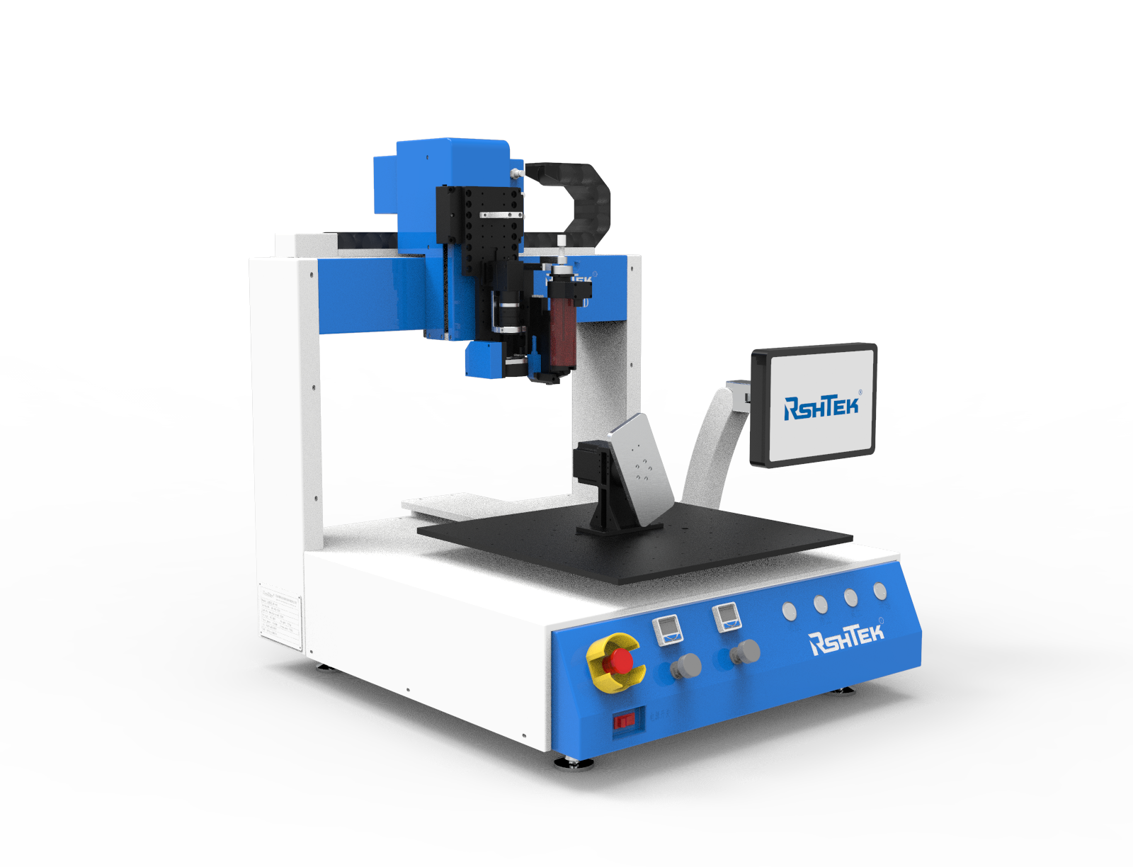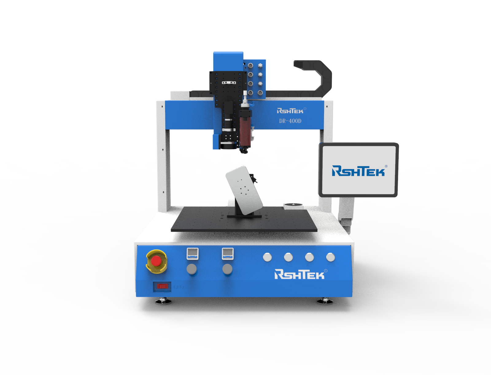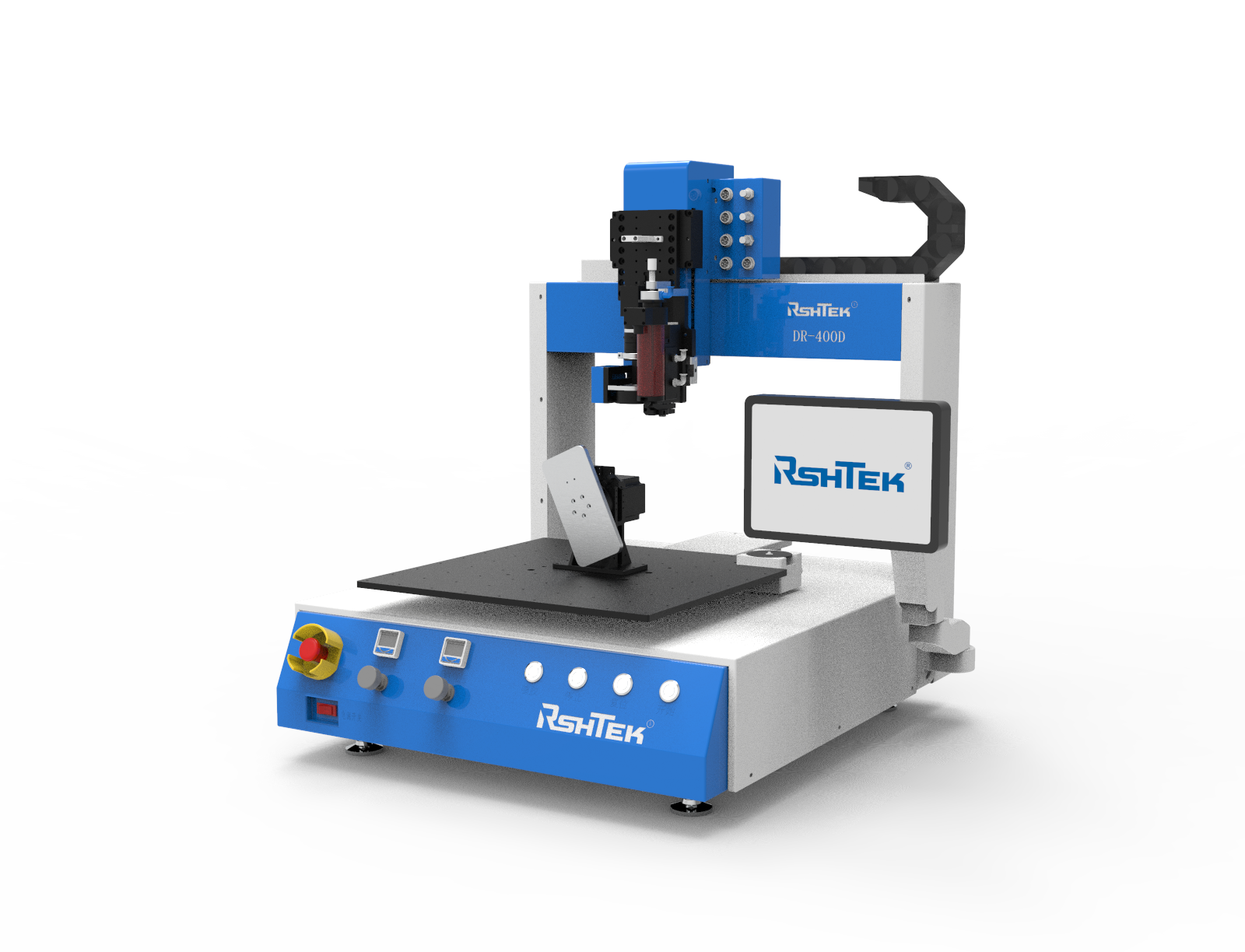 DR-400D是睿斯合桌面機(jī)DR系列的升級(jí)版,旋轉(zhuǎn)機(jī)構(gòu)帶動(dòng)產(chǎn)品旋轉(zhuǎn),可實(shí)現(xiàn)對(duì)產(chǎn)品四邊依次點(diǎn)膠。 睿斯合三軸桌面點(diǎn)膠機(jī)DR系列,嚴(yán)選伺服電機(jī)、絲桿品質(zhì),保證了產(chǎn)品的精度和耐用性??刂葡到y(tǒng)全內(nèi)置設(shè)計(jì)+懸臂式顯示器,使得整機(jī)緊湊,更方便收納??纱钆涠嗫铧c(diǎn)膠閥,滿足不同工藝生產(chǎn)的需求。適用于熱熔膠粘接、底部填充膠、表面貼裝等。